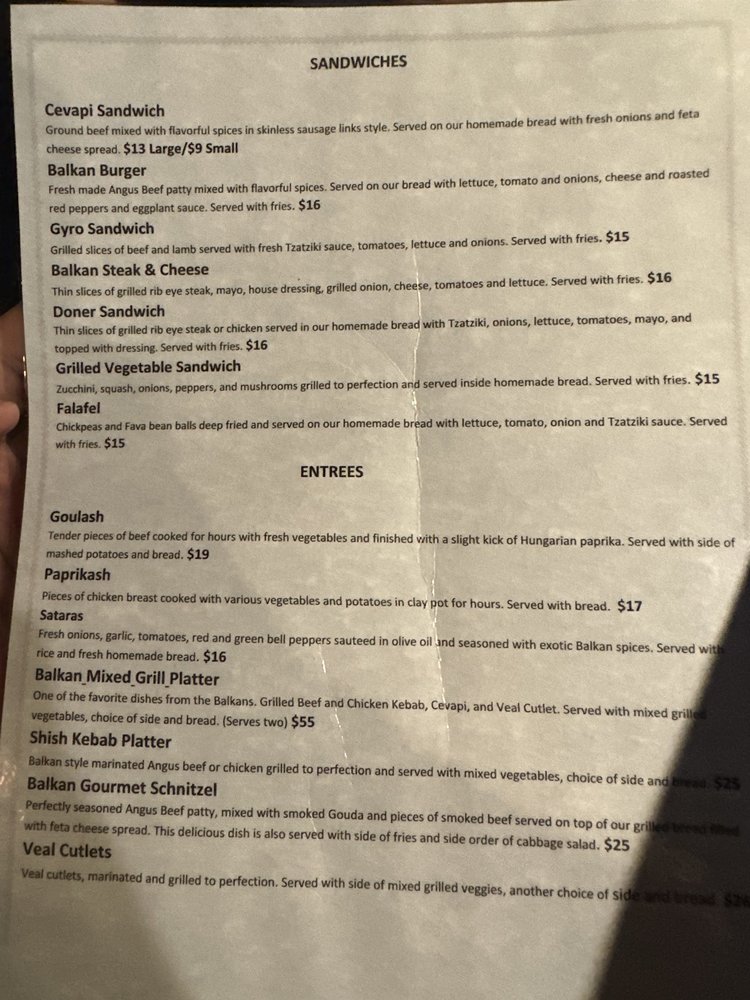 The menu features a delightful assortment, from the Mixed Grill Platter, showcasing steak, chicken, veal, and savory ćevapi sausages, to the irresistibly crispy Börek. Don't miss out on their Balkan Potatoes, hailed as life-changing by patrons!